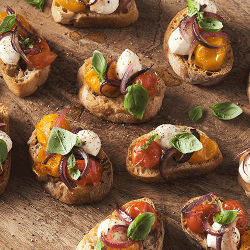 ROASTED CHERRY TOMATO, BOCCONCINI AND BASIL CROSTINI